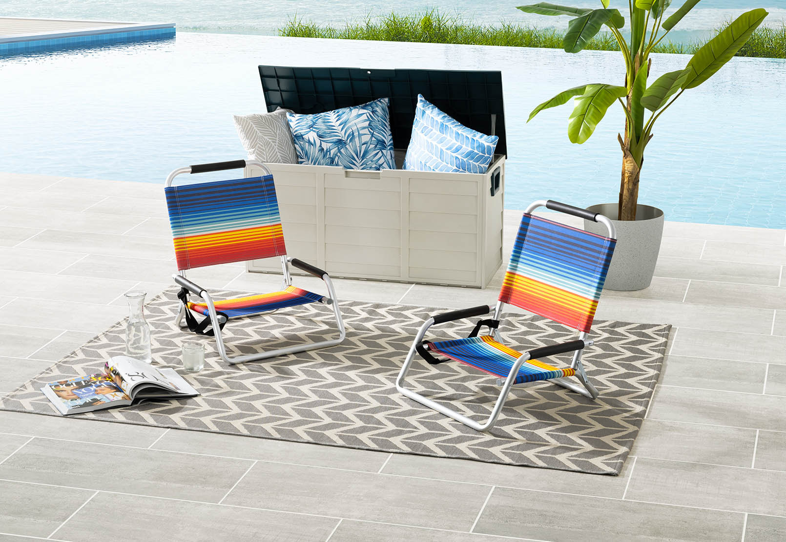 Source: www.amartfurniture.com.au Reviewed in the united states on october 8, 2015. Gray reclining/folding zero gravity beach and lawn chairs (set of 2) by wunin (1) new. Each side cavity can carry up to 40 pounds (80 lbs.